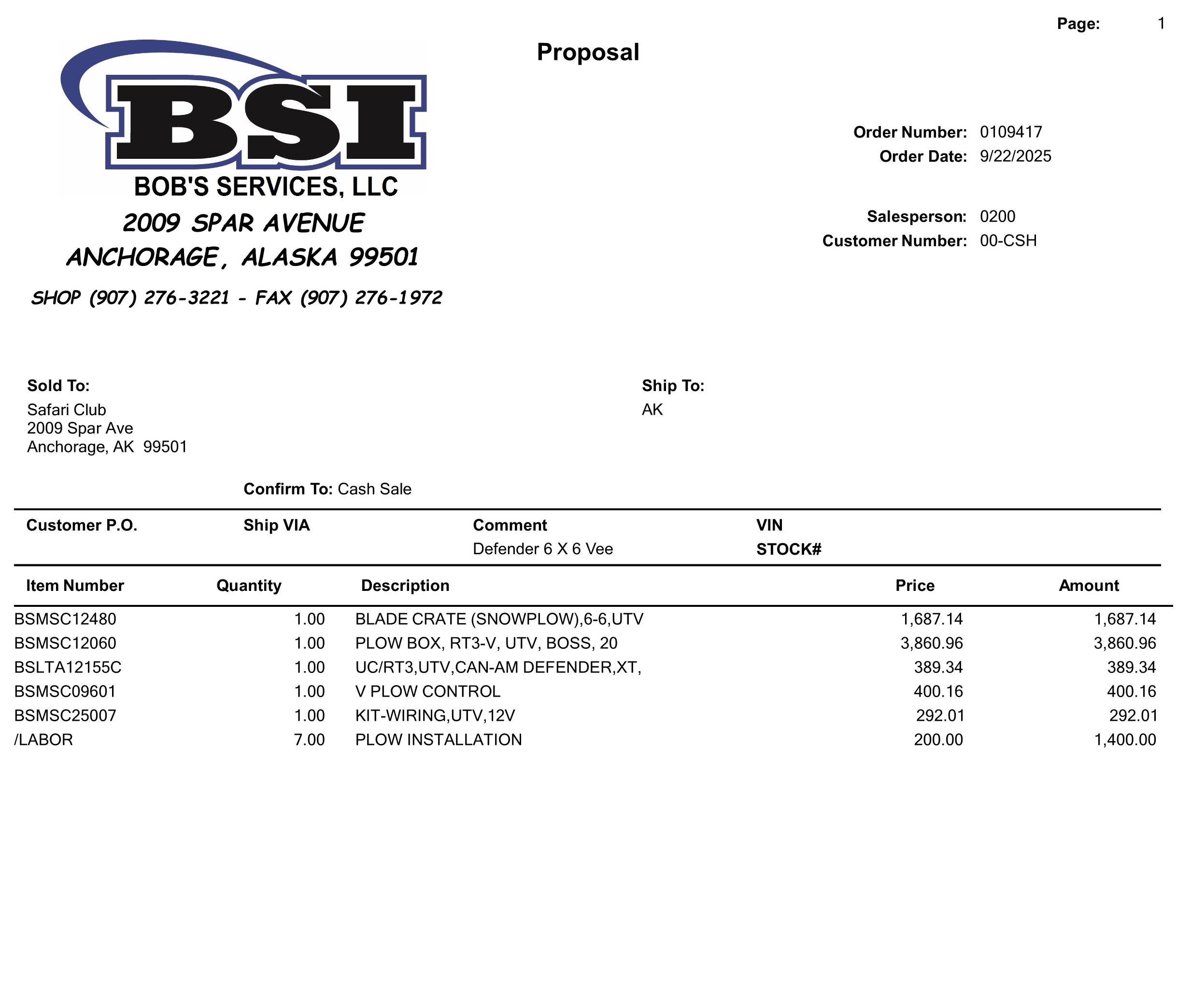 - A Boss Snowplow with a premium control kit. $8,030.00